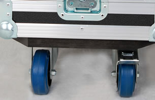 Für Endstufen-Racks bieten wir ein Case in Case an. Das Flightcase ist außen mit mindestens 4 Einbaugriffen und 4 Lüftungseinsetzen zur besseren Kühlung versehen. Innen werden die Endstufen dann in gepufferte Rackschienen eingehängt, um die Vibrationen die auf oder neben der Bühne entstehen aufzufangen. Größen von 6HE bis 20 HE möglich.